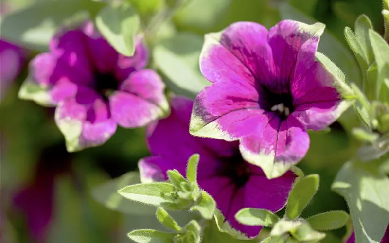 Diese kleinen Blühwunder sind bei vielen Pflanzenliebhabern die Nummer 1. Die Petunie kann ausgesprochen vielseitig verwendet werden und gedeiht im Beet, in Blumenkästen oder in Hängeampeln. Vom Mai bis in den Herbst hinein blüht die Petunie unermesslich in den schönsten Farben. Lassen Sie sich dieses Blütenfeuerwerk nicht entgehen und bieten der Pflanze einen Sonnenplatz! Im Halbschatten dürfte die Blütenfülle weniger üppig ausfallen. Länger Freude an den Blüten haben Sie auch, wenn Sie die Pflanzen vor Wind und Regen schützen.