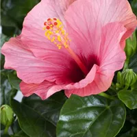 Soll die lauschige Ecke im Garten wirklich blickdicht werden, dann ist der Hibiskus der Garant dafür. Sein verlässlich dichtes Laubwerk sorgt für die kuschelige Atmosphäre, und an dem umwerfenden Flor kann man sich ohnehin nicht sattsehen. Genauso wirkt er auch als botanischer Raumteiler. Hinter dem blühenden Wall kann es mit einem anderen Gartenthema weitergehen. Auch eine Hecke kann er gestalten, denn er nimmt das Beschneiden und Zurechtstutzen nicht übel. Wenn er gemeinsam mit einer Weigelie zur Begrenzung wird, entsteht ein reizvolles Pflanzen-Duett mit ganz eigenem Charme. Auch einige Nummern kleiner verliert er seine Strahlkraft nicht. Betonen Sie die erste Stufe Ihres Terrassenaufgangs mit einem Kübel, in dem Sie Hibiskus, Schönmalven und Glockenblumen zu einem farbenfrohen Trio vereinen. Die Wirkung überzeugt.